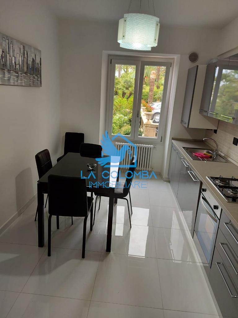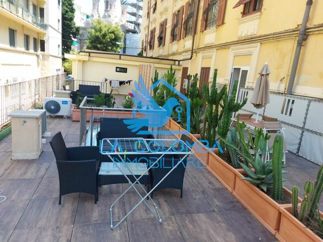 Sanremo - Via Nuvoloni - in the city center, in front of the Russian Church and near the sea, we offer a furnished apartment in modern style and newly renovated, located on the ground floor with relaxation area and large private terrace on the upper floor connected by internal stairs. The apartment consists of: entrance to living room with open kitchen (complete with dishes, oven and fridge), double bedroom and bathroom with shower.