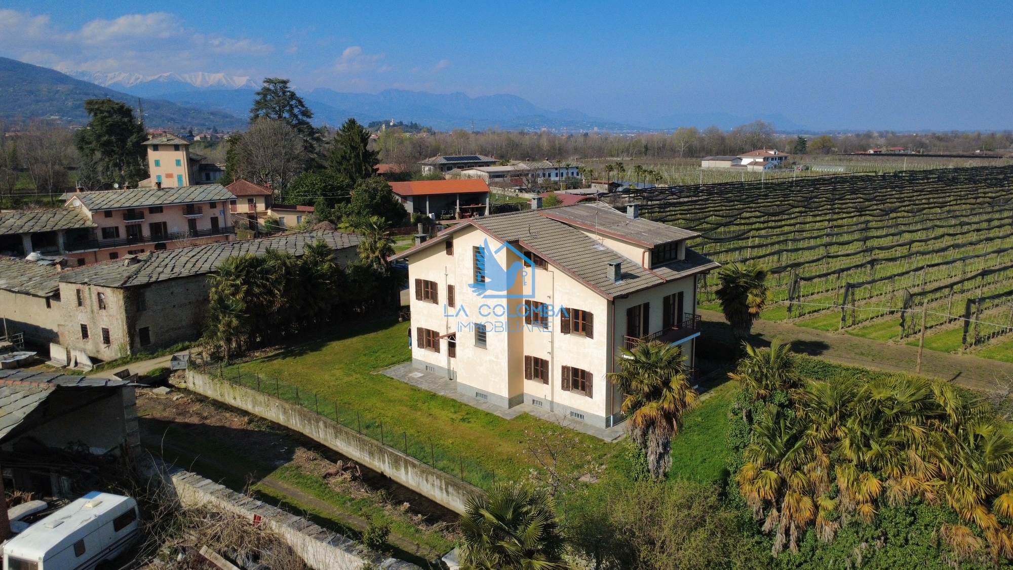 In a quiet setting in Campiglione Fenile, we offer for sale a bright and spacious four-room apartment located in a house free on four sides with a pleasant 1,630 sq m garden.